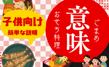おせち料理の『ごまめ』の意味や由来を一般的な解釈と子供向けに、わかりやすい説明をします。ごまめとは漢字で五万米と書き、イワシの稚魚を使った肥料で大豊作の米が実った事に由来しています。五穀豊穣や子孫繁栄の意味がありますが、小学生になら勉強やスポーツは『工夫次第で結果が実る』と拡大解釈した方が理解しやすい内容になります