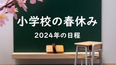 暮らし 【2024年】小学校の春休みはいつからいつまで?小学生の春休み期間⇒平均は何日? 2024年の小学校の春休みはいつからいつまでかを徹底調査!令和6年の小学生の春休みは『2024年3月26日から4月7日までの期間』が平均!全国版⇒北海道・東北の青森市から北陸の新潟・石川市。関東の東京都と横浜市、さいたま市、関西の大阪市・京都市+広島・岡山⇒九州福岡市と沖縄の小学校の春休み期間2024年度を紹介します 2024.03.13 2026.01.31 暮らし