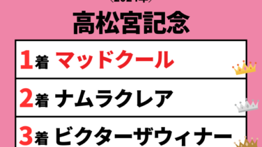 トレンド 【高松宮記念】2024年の結果!払い戻しとレース成績!掲示板内・配当・着順 高松宮記念(2024年3月24日15:40、中京1200m)のレース結果。1着:マッドクール、2着:ナムラクレア、3着:ビクターザウィナーで決着!高松宮記念の過去結果(掲示板内、配当、着順)をご紹介します 2026.03.15 トレンド