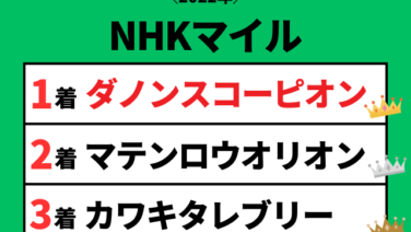 トレンド 【NHKマイルカップ】2022年の結果!払い戻しとレース成績!掲示板・配当・着順 NHKマイルカップ(2022年5月8日15:40、東京1600m)のレース結果。1着:ダノンスコーピオン、2着:マテンロウオリオン、3着:カワキタレブリーで決着!NHKマイルの過去結果(掲示板内、配当、着順)をご紹介します 2026.04.11 トレンド
