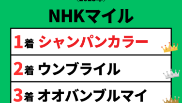 トレンド 【NHKマイルカップ】2023年の結果!払い戻しとレース成績!掲示板・配当・着順 NHKマイルカップ(2023年5月7日15:40、東京1600m)のレース結果。1着:シャンパンカラー(9人22.2倍)、2着:ウンブライル(8人12.9倍)、3着:オオバンブルマイ(3人6.1倍)で決着!NHKマイルの過去結果(掲示板内、配当、着順)をご紹介します 2026.04.12 トレンド