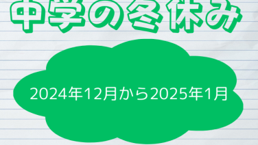 暮らし 【2024-2025年】中学校の冬休みはいつからいつまで?中学生の冬休みの平均何日 2024年の中学校の冬休みはいつからいつまでか徹底調査。今年の中学生の冬休みは『2024年12月26日(木曜日)から2025年1月6日(月曜日)までの期間』が主流!全国版⇒北海道・東北の青森市から北陸の新潟。関東の東京都と横浜市、さいたま市、関西の大阪市・京都市、広島・岡山、福岡と沖縄の中学校の冬休み期間を紹介します 2024.12.11 2025.09.17 暮らし