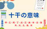 甲・乙・丙・丁・戊・己・庚・辛・壬・癸の音読みや訓読み、より詳しい情報は上記ににて解説をします。陰陽と五行の木、火、土、金、水が関連する内容になります