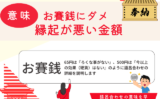 お賽銭の相場がいくらがわからず、金額に困った時に語呂合わせで決める事があります。お賽銭に良い金額は100円(百のご縁)や1万円(満縁)というように意味があります。縁起が良い金額とお賽銭にダメな意味がある金額をまとめました