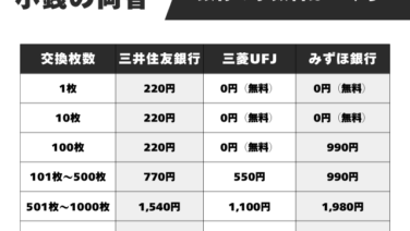 【小銭の両替】銀行の手数料はいくら?三井住友・三菱UFJ・みずほ・ゆうちょ銀行