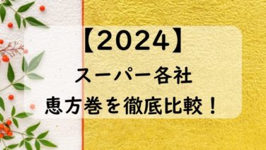 暮らし 【2024】スーパーの恵方巻き比較!イオンvsイトーヨーカドー!業務スーパーは? 2024年度版!スーパーの恵方巻きを徹底比較!イオン、イトーヨーカドー、ダイエー、業務スーパー!まいばすけっと等!スーパーの恵方巻きの具や価格、予約なし買える恵方巻きは?ライフとサミット、マルエツの恵方巻きの予約はいつからいつまで?人気の恵方巻き、売り切れ商品、定番おすすめの恵方巻きの海鮮、肉の恵方巻きを激選します 2024.10.26 2025.08.25 暮らし