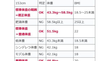 美しく 身長別!女子・男子の130cm~139cmの標準体重・適正体重!BMI基準値+早見表・一覧! 女子+男子の身長130cm~135cm、136cm~139cmの標準体重・適正体重、普通体重・体型の範囲、基準値以下の低体重(やせすぎ)、肥満度を徹底解説!小柄女性の標準体重・適正体重はココ。BMI数値を計算後の体重の早見表・一覧リスト。年齢別!小学生以下のローレル指数、高齢者向けのBMI基準値+体重の範囲を説明します 2024.02.28 2024.04.11 美しく