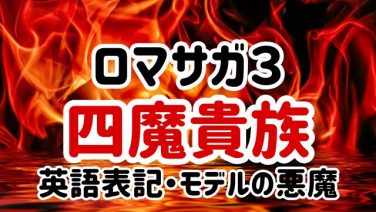 学ぶ 【ロマサガ3】四魔貴族の一覧表(読み方・英語表記・スペル・名前の由来・モデル) ロマンシング・サガ3のボス、四魔貴族(よんまきぞく)の一覧表!名前の由来は?魔戦士公アラケス(Araces)、魔龍公ビューネイ(Bunei)、魔海侯フォルネウス(Forneus)、魔炎長アウナス(Aunas)はソロモン72柱の悪魔が元ネタです。ビューネイは悪魔階級の序列26、公爵ブネと名前がアナグラムになっています 2025.02.03 2025.02.19 学ぶ