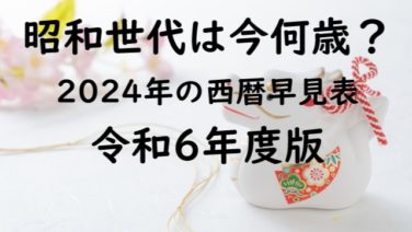 暮らし 【2024年】昭和生まれと西暦の年齢早見表!昭和世代は今何歳?満年齢と数え年 昭和と西暦早見表2024年度版(令和6年)。昭和生まれの人は今何歳なのか。昭和生まれは何歳から何歳まで?今年、何歳になる?満年齢と数え年の年齢早見表。1980年は昭和55年、今年は44歳と過去の年号と西暦を換算した対照表、早見表にしました。覚え方と簡単な計算方法、昭和何年かわかる方法は西暦の下二桁に25を引き算です 2024.03.23 2024.03.27 暮らし