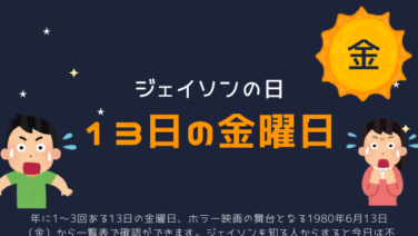 2026年の13日の金曜日はいつ?今年は2026年2月13日(金)、3月13日(金)、11月13日(金)です。来年の13日が金曜日の日は?年に1~3回ある13日の金曜日、ホラー映画の舞台となる1980年6月13日(金)から一覧表で確認ができます。ジェイソンを知る人からすると今日は不吉な日かも?とソワソワしてしまう日です