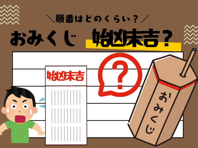 学ぶ 【おみくじ】始凶末吉の順番とは?縁起はいいの?意味や厳島神社の順番! おみくじを引いたら『始凶末吉』が出た!始凶末吉の順番は?縁起は良いの?おみくじの順位が分からない人向けに『始凶末吉』の意味や解釈をわかりやすく説明します。始凶末吉(読み方:はじめきょうすえきち)は『最初は悪いけど、最終的に良い方向に向かう』が意味になります。始凶末吉が入っている厳島神社のおみくじの順番を解説します 2025.12.23 学ぶ